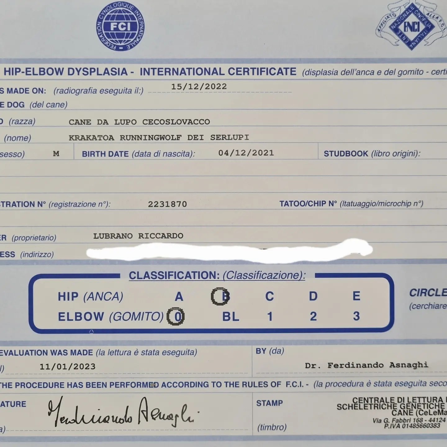 Risultati ufficiali controllo anche e gomiti per il nostro Krakatoa 2023-02-27 00:00:00 RunningWolf Tornati i risultati ufficiali del controllo Displasia Anche e Gomiti del nostro principe Krakatoa RunningWolf dei Serlupi 🐺 Siamo felicissimi per la sua salute!🙂💪